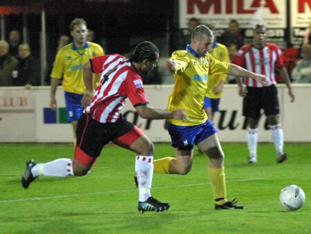 St Albans City appeared to be cruising towards their first away Nationwide South victory since the opening day of the season at Hornchurch on Tuesday before a dreadful lack of discipline helped cement their position at the foot of the table. Having bossed the opening 45 minutes and led through Lee Clarke's fine early strike, City simply self-destructed after the break much to the relief of the Urchins former City manager Garry Hill. Dean Hooper, back as captain after missing the Margate match, was dismissed for the second time this season for twice showing dissent to the referee while three other City players were also booked with two of them being for dissent. The amazing turnaround in second half fortunes was a bolt out of the blue as City controlled the early stages with some sweeping moves and periods and of sustained possession that never allowed Hornchurch to get into the game. With the experienced Paul Bastock making his debut between the sticks City were quickly into their stride and a goal to the good inside five minutes. Clarke played the ball wide to Ben Walshe who headed for the by-line before feeding Matt Nolan, with a carefully laid ball into Clarke's path he set up the Saints leading scorer to add one more to his tally with a rising from 18 yards. Although City created few clear goalscoring opportunities their patient and precise build-ups were highly impressive. Hornchurch caused Saints no discomfort until midway through the half when David Hicks missed a free header in front of goal from a Danny Hill corner. City quickly returned to the offensive with Walshe and Scott Cousins linking well before the latter's excellent ball was miscontrolled in the penalty area by Parker but the Urchins were not yet safe as the erratic Abidon Baruwa fumbled the ball a couple of times before finally getting a firm grip as City tried to force the loose ball home. Parker squandered a good chance to double City's advantage on 39 minutes when he headed wide from a Walshe corner but it was Hornchurch who finished the half stronger although they failed to get on target any of three good chances created. Within minutes of the second half starting it was evident that City had sacrificed their passing game for aimless hacks upfield which made life extremely difficult for Clarke, Walshe and Nolan whilst also allowing Hornchurch to have far more of the play than they could have anticipated at half time. Despite enjoying a greater share of the play the Urchins were not really troubling the Saints but all that changed on 67 minutes when Hooper and Clarke quite stupidly directed needless dissent at referee Tony Mason and were both cautioned. Evidence of City losing their cool seemed to inject fresh impetus into Hornchurch's play but other than for a poor header by Chris Carruthers from a Jan-Michel Sigere cross the Saints still appeared the most likely winners. But with just 15 minutes remaining Hornchurch ended a run of three consecutive defeats when, from Carruthers twice-taken free kick from 20-yards, Bastock got down well to parry the shot but could do nothing to stop the ball rebounding into the goal off the shins of Ben Martin. City suffered a further setback on 83 minutes when Hooper took exception to having a free kick awarded against him and was shown a second yellow card before seeing an all too familiar red. Both sides could have secured victory in the closing with Clarke and Roddis both snatching wide at chances created by Nolan before the best opening came the way of Parker who failed to turn in Cousins free kick. At the opposite Adam Locke set up Danny Shipp for crisp low drive that Bastock stretched to push around the post and in added time the Saints new-boy safely gathered Hill's long-range effort.