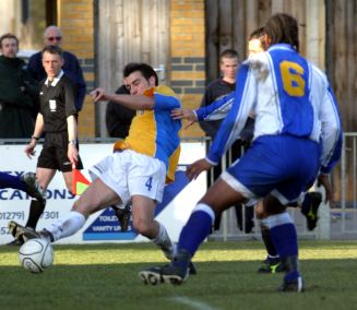 With a succession of superbly timed and crisp tackles Stortford did enough to keep City at bay until the 76th minute when their pressure was rewarded. Deacon, showing a return to his early season form, won the ball and helped it on to Lee Clarke who in turn sent Wraight into the penalty area down the City right. After shrugging off one solid challenge the midfielder crossed low in front of the keeper for Watts to score with ease at the back post.