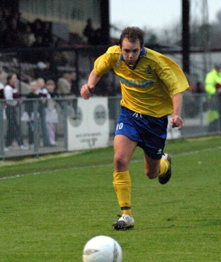 The Saints secured a very welcome three points, their first away win since the opening day of the season, and a first League victory in 6 outings under new manager Colin Lippiatt. This is the first of the 'return' matches, a sign that the half-way mark of the season is approaching, and City reproduced the scoreline from the meeting of these two sides at Clarence Park in September. Further player movements during the past week saw the return to Peterborough of striker Matt Nolan at the end of his loan period, the release of midfielder Adam Parker and the transfer listing at his own request of Dean Hooper, suspended today. Lippiatt opted for yet another formation with the recall of 18 year old striker Tom Beech to play a lone forward role supported just behind by Lee Clarke. Ram Marwa was recalled to the midfield in place of Parker and James Gibson continues to deputise for Hooper. City started brightly, clearly the better organised of the two sides. The experienced Paul Bastock in goal directed the young back four and they were largely untroubled throughout. A couple of rare early crosses from the home side were well taken by the City keeper who clearly gives confidence to those around him. Ben Walshe, returning to the side from injury, tested Stuart Searle the home keeper with a long range effort, and Beech, working hard alone up front pressured the keeper who frantically cleared to the side-line. Against the run of play, Bastock was required to show his pedigree with a full stretch save of a fierce drive from Sam Saunders from distance. On 28 miinutes, City deservedly took the lead. Nick Roddis was cynically brought down after a run wide on the left and Ram Marwa sent the free-kick into the crowded area. The ball struck the outstretched foot of Carroll and beat the despairing dive of the surprised Searle. Roddis took another knock and was replaced by the popular local youngster Chris Seeby which, setting aside Bastock, brought the average age of the City side to under 21. The visitors came close to extending the lead just before the break. Tom Davis sent a long crossfield pass to Beech who controlled the ball well before making a short pass to Walshe coming on at pace but his curling effort was inches wide. The Robins briefly threatened at the start of the second half but found the City defence resolute. Bastock blocked a firm drive from Bradley Pritchard and moments later, the only moment of confusion in defence caused by a deflection gave a chance to Adrian Stone but he could only fire high. City settled and took control of the game once more before extending their lead with a fine goal on 65 minutes. Marwa found Clarke who sent Beech on a run on the right flank. The youngster hit an inch perfect cross to the feet of Clarke who who struck a super shot to give Searle no chance. This was Clarke's 16th goal of the season and his seventh in the last 7 games. The Saints piled on the pressure, playing football that belied their League status. Beech had a good claim for a penalty denied when apparently impeded by Matt York, and then came close to opening his account for City but was thwarted by a desperate goal-line clearnance by Mark Costello. Searle saved an apparently goal-bound effort from Seeby befiore the visitors third goal on 76 minutes. Beech juggled the ball to keep possession, played a neat one-two, and hit a square ball to Scott Cousins. The strikers spread to left and right taking defenders with them and space opened for the advancing left-back who calmly shot inside the right hand post from just outside the area, his first goal in a City shirt. The Saints continued to press and both Walshe and substitute Matt Hann came close to extending their lead before the home side scored a consolation goal through Stone with two minutes of time remaining. The visitors ended the game on the attack when Searle did well to block a Hann effort.
