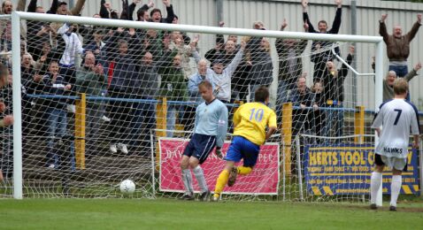 Put the calculators away – we are safe! The magnificent work carried out by Colin Lippiatt since he sneaked in through the back door to become the Saints manager during the early part of the winter has born fruit over the past five days with the clubs first silverware for five years being swiftly followed by the certainty of St Albans City now being able to plan for a second season of life in the Nationwide Conference South. Saturday’s victory over a Havant & Waterlooville side that had tasted defeat just once in its previous dozen games was by no means as emphatic as it looks on paper but that the credit for our finest hour, okay ninety minutes, should go to two players who have probably contributed most this season to our survival - Lee Clarke and Paul Bastock – just seems like the icing on the cake. Clarke scored his second hat trick of the season, and third since joining from Peterborough United, while Bastock made a succession of quite fantastic saves to take the Saints to 51 points for the season; three more than with which we stole the final play-off place last season. The record books will point to Clarke, due to his excellent treble, as being the City hero of this game and given his record of 13 goals in his past 13 appearances the Northern Ireland Under 21 international deserves all the praise heaped in his direction, but most of those in the disappointingly low crowd of 384 know that the person who laid the foundation for Clarke to be the star of the show was the Lincolnshire lad Bastock. For the Saints 50th match of the season Lippiatt brought Chris Zoricich back into the starting line up for the first time in seven weeks, he went to right back with Chris Seeby switching to the left and Scott Cousins being given his first run out in midfield. Cousins has played there prior to joining the Saints and he certainly looked comfortable in this more attacking role as he gave one of his best performances of the season, his use of the ball and crossing certainly increased our attacking options. In the centre of the defence Ben Martin, playing alongside Gary Elphick, continued his run of good form and was unfortunate to pick up a harsh booking from referee Dave Bushell who, overall, had a pretty decent game. The match got off to a lively start although far too many misdirected passes stopped the game from being a free flowing spectacle. However, even from early on it was clear that both sides would pose problems when going forward. Even so it took a misunderstanding to present the first real goalscoring opportunity of the afternoon as Elphick and Bastock sent confusing messages to each other as the ball rolled towards the edge of the penalty. Hawks Dave Town nipped in but had his shot blocked by the City keeper. From then on the Hampshire outfit created the better chances and will have travelled home wondering how they managed to leave all three points behind at Clarence Park. Bastock made the first of his spectacular saves just prior to the half hour when tipping over the crossbar a header from Tom Jordan following a Jamie Campbell cross. City responded with an excellent long crossfield ball from Ram Marwa to Seeby who in turn found Cousins whose glorious cross from the left just eluded both Clarke and Matt Hann. Another ball in from Cousins saw Marwa make a delightful dummy to open up enough space for Clarke to shoot narrowly wide following a quick twist. A swift Havant counterattack ended with Jamie Collins going close with scorching drive but on 39 minutes City sniffed Conference South safety as Clarke opened the scoring. The Saints leading scorer battled to unsettle Hawks defender Neil Champion and from nothing a chance suddenly opened up as Kezie Ibe burst forward to seize on the loose ball and dart into the penalty area. Diving at Ibe’s feet, Gareth Howells, a veteran of 209 games during his four seasons at St Albans, did well to take the sting off the ball but as it tickled into the six-yard box Clarke tore in to slide the ball into the Hatfield Road goal. The remainder of the half, four bookings aside, was a taster for the second period as Havant upped the tempo and but for two stunning tip over the bar saves by Bastock would have gone in at half time a least on level terms. The visitors also made rowdy claims for a penalty when Elphick appeared to handle as he denied Neil Sharp a header on goal. Both sides were unchanged at the start of the second half and so was the flow of the game as Havant, for the opening ten minutes, hammered away furiously at the City goal. Picking out Bastock’s best save would not be easy but how the Saints custodian managed to claw away a Robbie Pethick half-volley that was screaming towards the top corner of the goal was a moment to treasure. The former Boston United keeper then dealt smartly with a Jamie Campbell header and the Hawks must have felt that this was not to be their day when a blistering drive from Collins almost uprooted the goal as it struck the underside of the crossbar, much to City’s relief Town had to stretch just a touch too much to get on the rebound and scooped it over the bar. But that miss was nothing compared the one seen moments later as Collins squared the ball to Brett Poate who cultivated the miss of the season in lifting the ball over the most open of open goals from barely six yards. City’s good fortune had to give at some stage and on 55 minutes the Hawks, minus the flu-ridden Dean Holdsworth, were back on level terms as Town crossed low for James Taylor to strike the right note by sweeping home the equaliser. A touch miffed City hit back four minutes later with a blow that clearly rocked the visitors and restored the Saints confidence. Martin led a City break with a fine ball out to Cousins who, after advancing, played it to the middle of the edge of the penalty area where Marwa neatly held up play before slipping it out to the right to Clarke. After declining to shoot first time Clarke cut inside Campb
